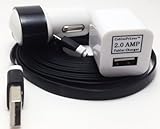 CablesFrLess (TM) 3 in 1 Super Fast 10ft 2amp Noodle Style Tablet Charging Set includes: (x1) 2amp USB Car Adapter. (x1) 2amp USB AC Wall Adapter. (x1) 10ft Micro B USB Charging / Data Sync cable fits Android Tablets Google Nexus Kindle Fire Touch Samsung Galaxy S4 Note Acer HTC LG Pantech Motorola ZTE